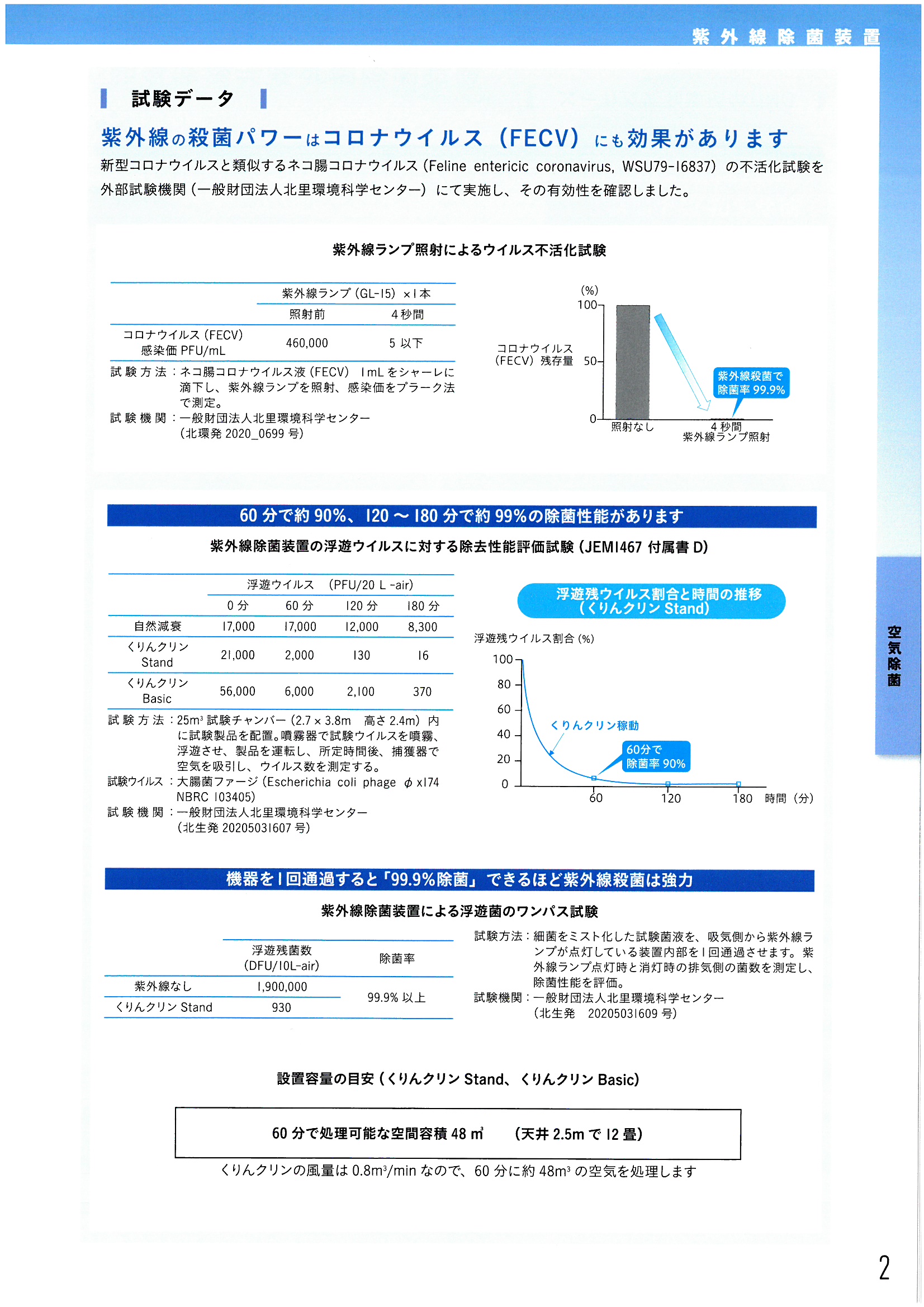 60分で約90%、120~180分で約99%の除菌性能があります。