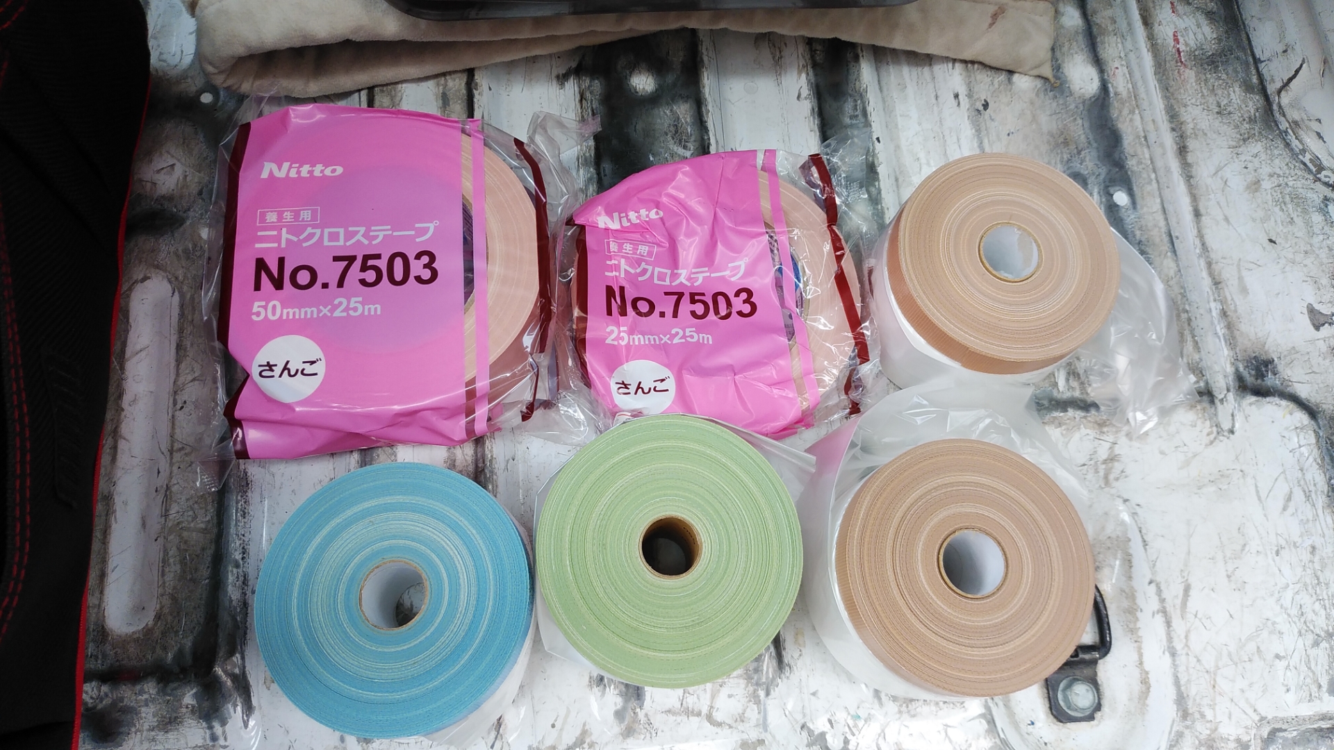 ②今回仕様する研磨工具(ライナックス)と養生テープ類です。